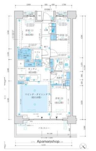 | 設備 | バス・トイレ別、オートロック、テレビドアホン、宅配ボックス、浴室乾燥機、ウォークインクローゼット、システムキッチン、カウンターキッチン、エアコン、エレベーター、温水洗浄便座、バルコニー、フローリング、床暖房、3口コンロ、コンロ:ガス、シャワー、給湯 | ||