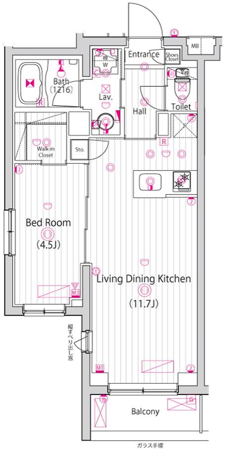 | 間取り | 1DK | 専有面積 | 38.29m2 |