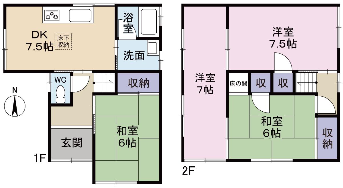 | 間取り詳細 | 和室(6帖)、DK(7.5帖)、和室(6帖)、洋室(7帖)、洋室(7.5帖) | ||
