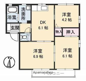| 間取り詳細 | 洋室(6.1帖)、洋室(6.9帖)、洋室(4.2帖)、DK(6.1帖) | ||