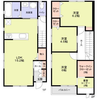 | 設備 | バス・トイレ別、テレビドアホン、宅配ボックス、浴室乾燥機、ウォークインクローゼット、追い焚き、温水洗浄便座、バルコニー、フローリング、コンロ:IH、冷房、洗濯機:室内 | ||