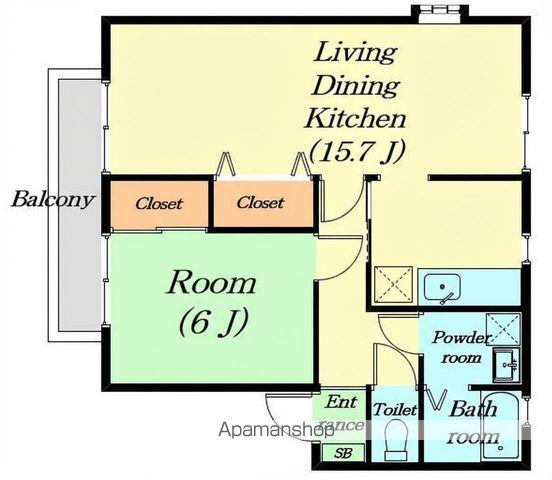 | 間取り詳細 | LDK(15.7帖)、洋室(6帖) | ||
