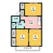 | 設備 | バス・トイレ別、2階以上、テレビドアホン、インターネット対応、エアコン、温水洗浄便座、南向き、バルコニー、洗髪洗面化粧台、インターネット使用料無料、洗濯機:室内 | ||