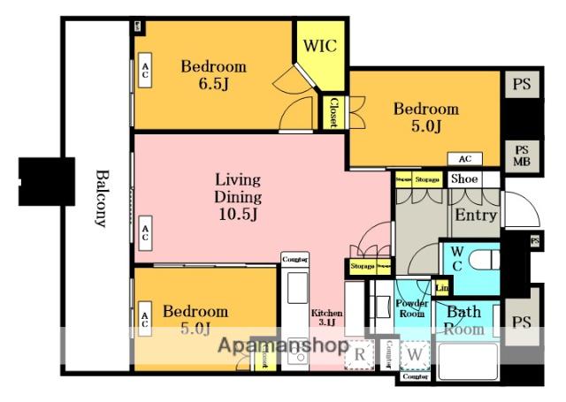 | 所在階 / 向き | 3階 / 南 | バルコニー面積 | 31m2 |