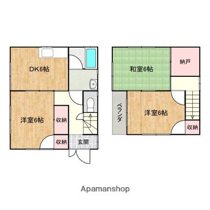 | 間取り詳細 | DK(6帖)、和室(6帖)、洋室(6帖)、洋室(6帖) | ||