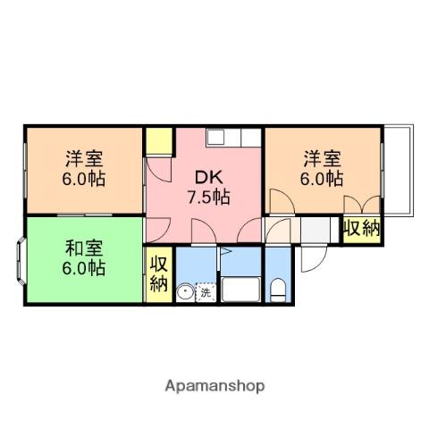 | 間取り詳細 | DK(7.5帖)、洋室(6帖)、洋室(6帖)、和室(6帖) | ||