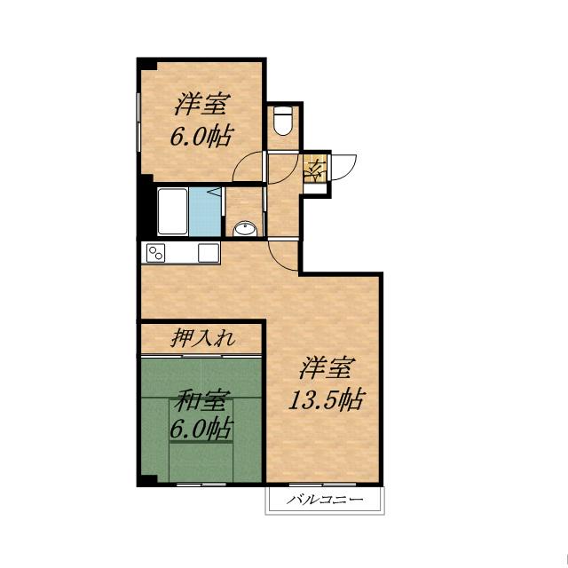 | 間取り詳細 | LDK(13.5帖)、洋室(6帖)、洋室(6帖) | ||