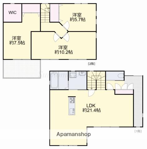 | 間取り詳細 | LDK(21.4帖)、洋室(10.2帖)、洋室(7.5帖)、洋室(5.7帖) | ||