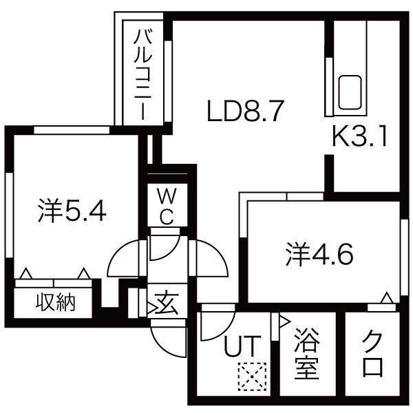 | 間取り詳細 | LD(8.7帖)、K(3.1帖)、洋室(5.4帖)、洋室(4.8帖) | ||