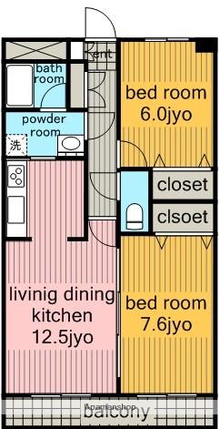 | 間取り詳細 | 洋室(6帖)、洋室(7.6帖)、LDK(12.5帖) | ||
