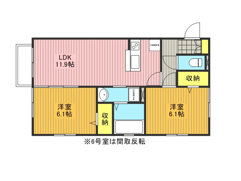 | 間取り詳細 | 洋室(6.1帖)、洋室(6.1帖)、LDK(11.9帖) | ||