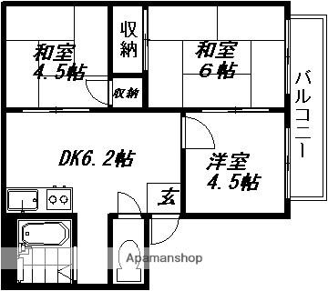 | 間取り詳細 | DK(6帖)、和室(6帖)、和室(4.5帖)、洋室(4.5帖) | ||