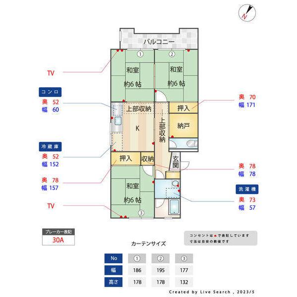 | 設備 | バス・トイレ別、2階以上、南向き、バルコニー、フローリング、コンロ:ガス、CATV、洗濯機:室内 | ||