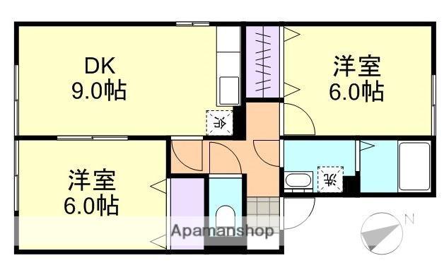 | 間取り詳細 | 洋室(6帖)、洋室(6帖)、DK(9帖) | ||