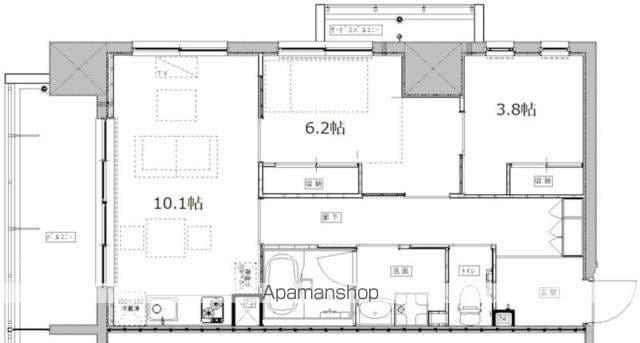 | 間取り詳細 | LDK(10.1帖)、洋室(6.2帖)、洋室(3.8帖) | ||