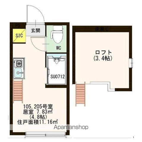 | 間取り | ワンルーム | 専有面積 | 11.04m2 |