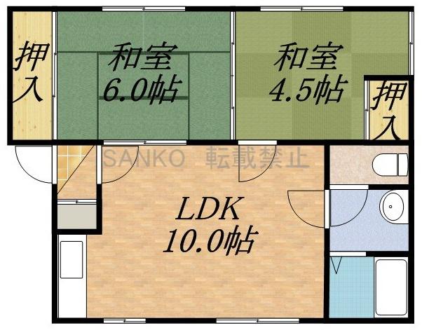 | 間取り詳細 | LDK(10帖)、和室(6帖)、和室(4.5帖) | ||