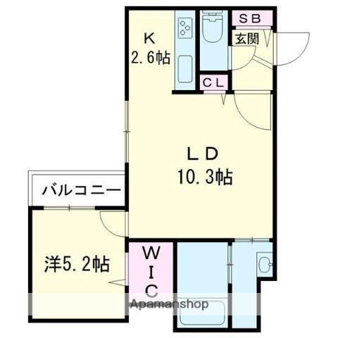 | 間取り詳細 | LD(10.3帖)、K(2.6帖)、洋室(5.2帖) | ||