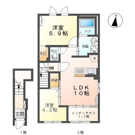 | 間取り詳細 | LDK(10帖)、洋室(4.2帖)、洋室(5.9帖) | ||