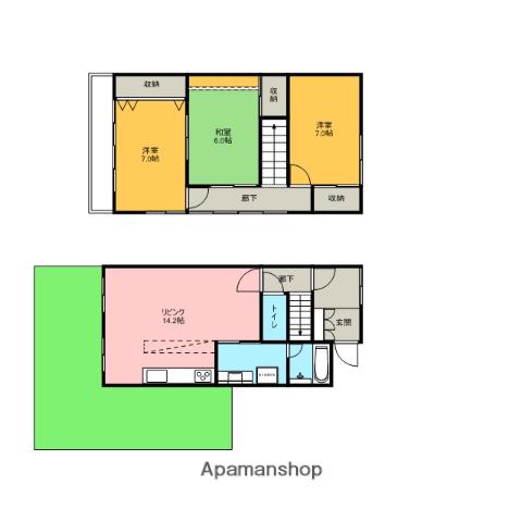 | 間取り詳細 | LDK(14帖)、洋室(7帖)、洋室(7帖)、和室(6帖) | ||