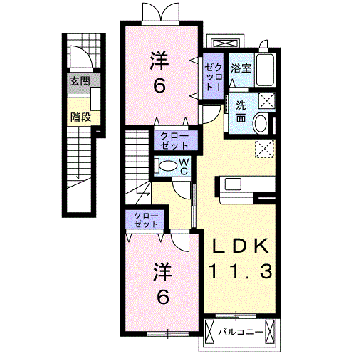 | 間取り詳細 | LDK(12.2帖)、洋室(6帖) | ||