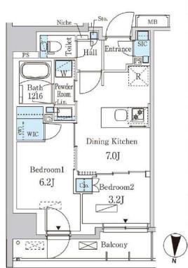 | 間取り | 2DK | 専有面積 | 40.59m2 |