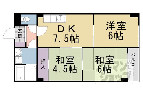 | 間取り詳細 | DK(7.5帖)、和室(6帖)、和室(4.5帖)、洋室(6帖) | ||