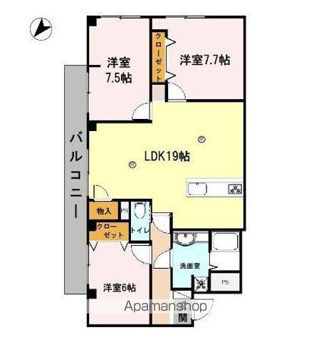 | 間取り詳細 | LDK(19帖)、洋室(6帖)、洋室(7.5帖)、洋室(7.7帖) | ||