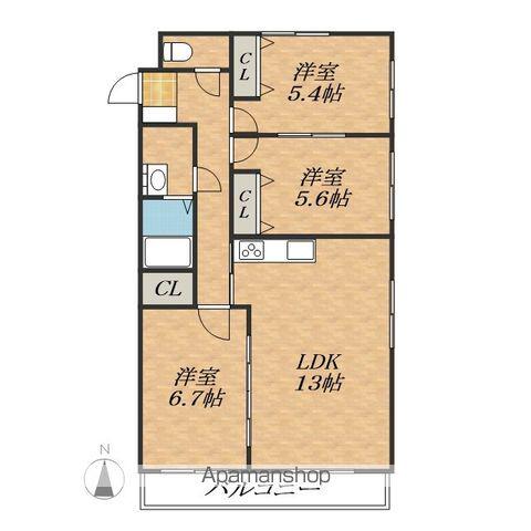 | 間取り詳細 | LDK(13帖)、洋室(6.7帖)、洋室(5.6帖)、洋室(5.4帖) | ||