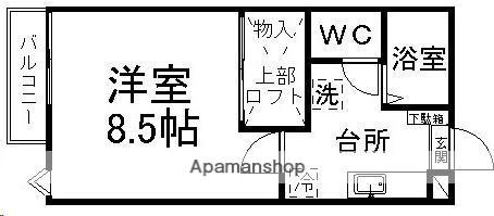 | 設備 | バス・トイレ別、テレビドアホン、ウォークインクローゼット、光ファイバー対応、温水洗浄便座、バルコニー、フローリング、ロフトあり、インターネット使用料無料、シャワー、給湯、洗濯機:室内 | ||