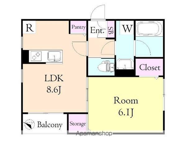 | 間取り詳細 | LDK(8.6帖)、洋室(6.1帖) | ||