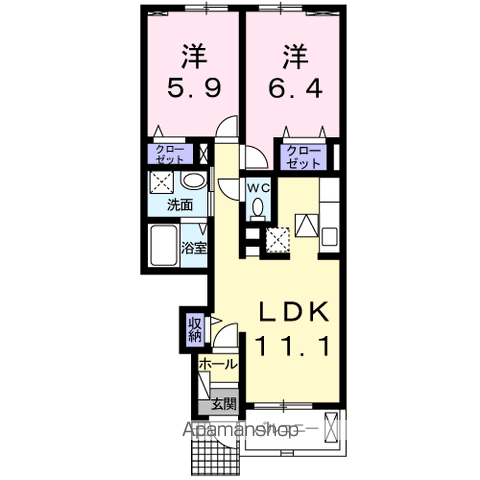 | 設備 | バス・トイレ別、テレビドアホン、浴室乾燥機、追い焚き、インターネット対応、温水洗浄便座、バルコニー、フローリング、床下収納、BSアンテナ、インターネット使用料無料、シャワー、洗濯機:室内 | ||