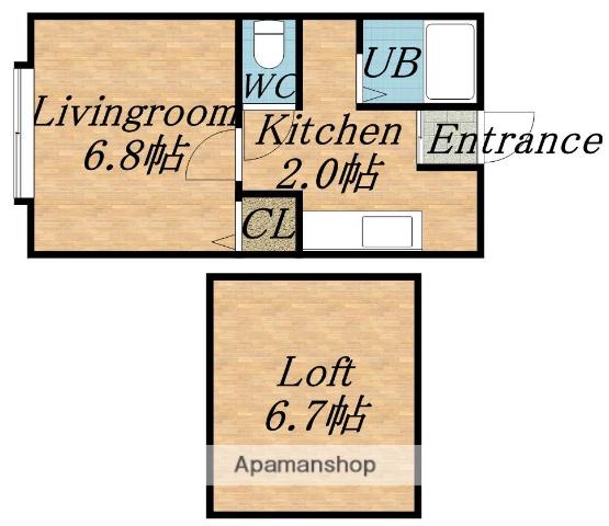 | 設備 | バス・トイレ別、2階以上、テレビドアホン、インターネット対応、南向き、フローリング、ロフトあり、コンロ:ガス、デザイナーズ、インターネット使用料無料、洗濯機:室内 | ||