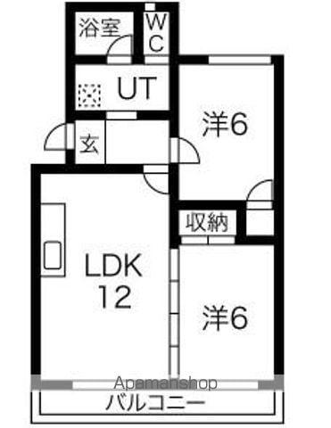 | 間取り詳細 | LDK(12帖)、洋室(6帖)、洋室(6帖) | ||