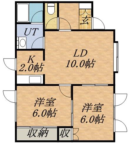 | 間取り詳細 | LD(10帖)、K(2帖)、洋室(6帖)、洋室(6帖) | ||