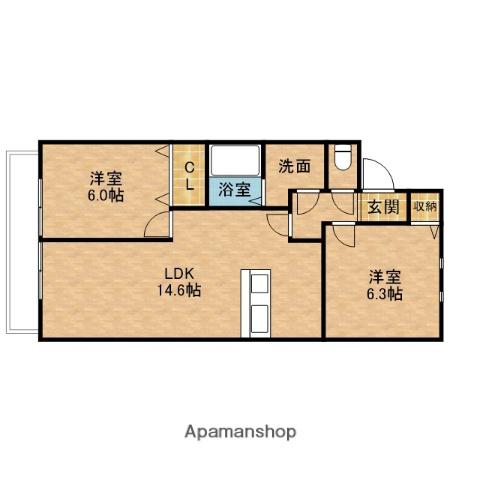 | 間取り詳細 | LDK(14.6帖)、洋室(6.3帖)、洋室(6帖) | ||
