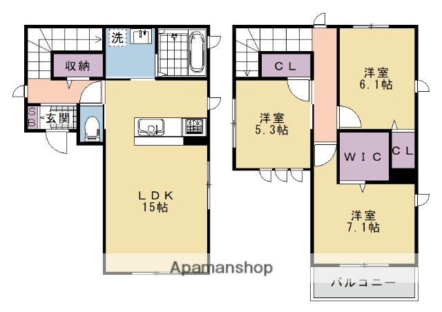 | 間取り詳細 | LDK(15帖)、洋室(7.1帖)、洋室(6.1帖)、洋室(5.3帖) | ||