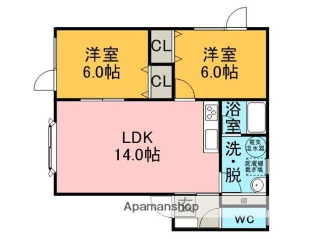 | 間取り詳細 | LDK(14帖)、洋室(6帖)、洋室(6帖) | ||
