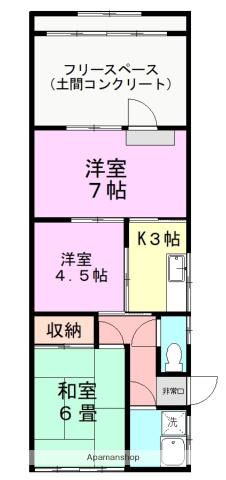 | 間取り詳細 | 洋室(7帖)、洋室(4.5帖)、和室(6帖)、K(3帖) | ||