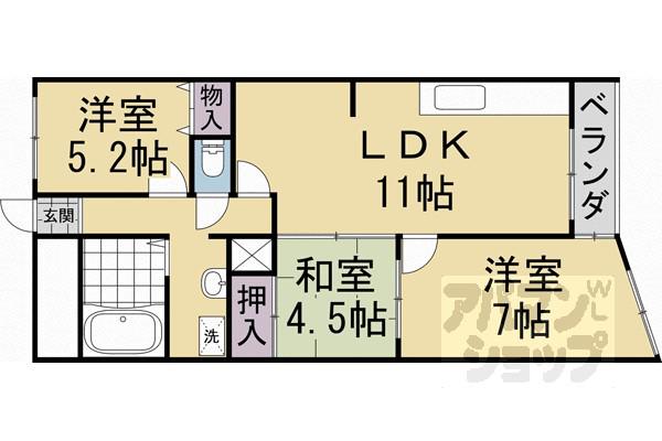 | 間取り詳細 | LDK(11帖)、和室(4.5帖)、洋室(5.2帖)、洋室(7帖) | ||