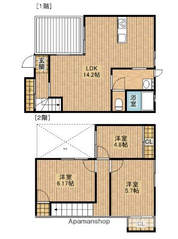 | 間取り詳細 | LDK(14.2帖)、洋室(6.2帖)、洋室(5.7帖)、洋室(4.8帖) | ||