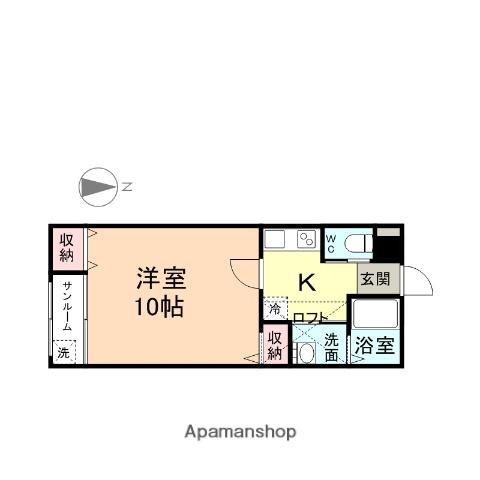 | 設備 | バス・トイレ別、テレビドアホン、インターネット対応、角部屋、フローリング、ロフトあり、インターネット使用料無料、シャワー、給湯、洗濯機:室内、閑静な住宅街 | ||