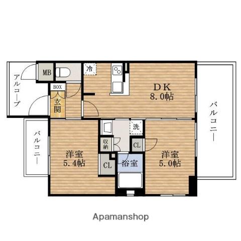 | 間取り詳細 | DK(8帖)、洋室(5.4帖)、洋室(5帖) | ||
