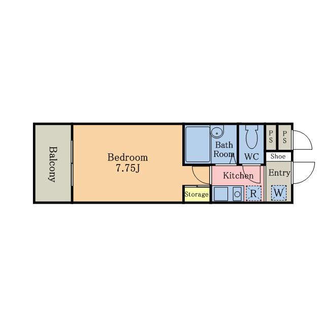| 間取り詳細 | K(2.5帖)、洋室(7.7帖) | ||