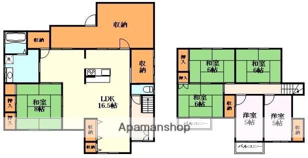 | 間取り詳細 | LDK(16.5帖)、和室(8帖)、和室(6帖)、和室(6帖)、和室(6帖)、洋室(5帖)、洋室(5帖) | ||