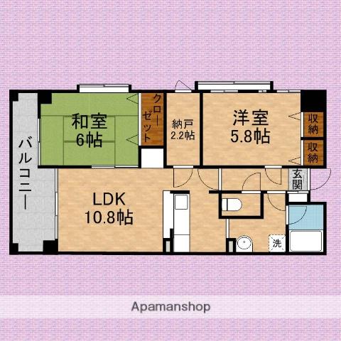 | 間取り詳細 | LDK(10.8帖)、和室(6帖)、洋室(5.8帖)、S(2.2帖) | ||