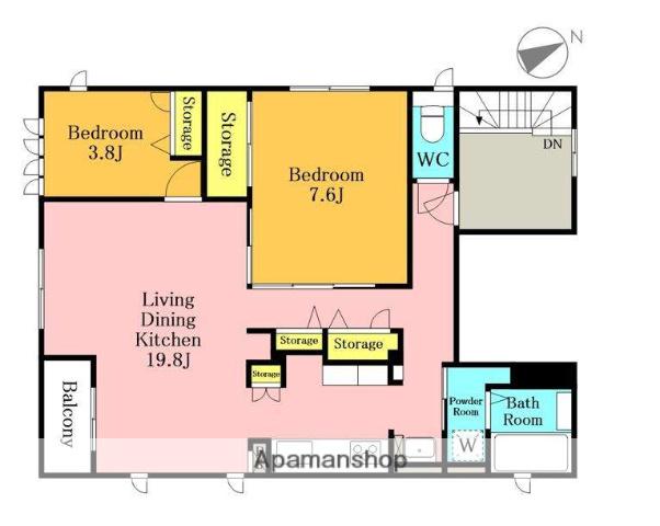 | 間取り詳細 | LDK(19.8帖)、洋室(7.6帖)、洋室(3.8帖) | ||
