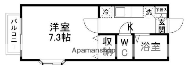| 間取り詳細 | 洋室(7.3帖)、K(3.4帖) | ||