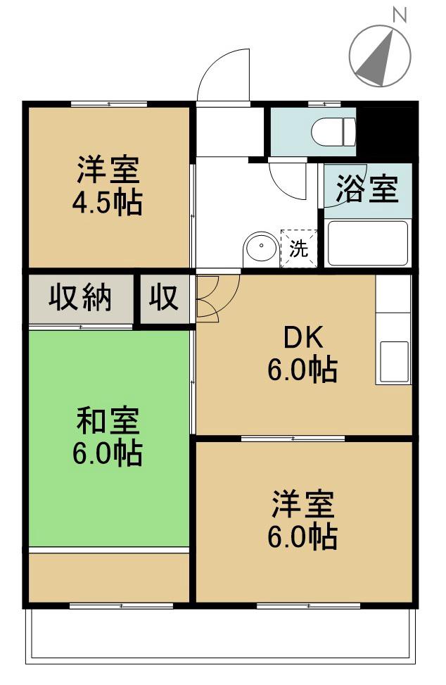 | 間取り詳細 | DK(6帖)、洋室(6帖)、和室(6帖)、洋室(4.5帖) | ||
