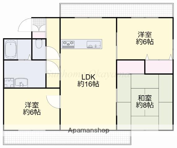 | 間取り詳細 | 和室(8帖)、洋室(6帖)、洋室(6帖)、LDK(16帖) | ||